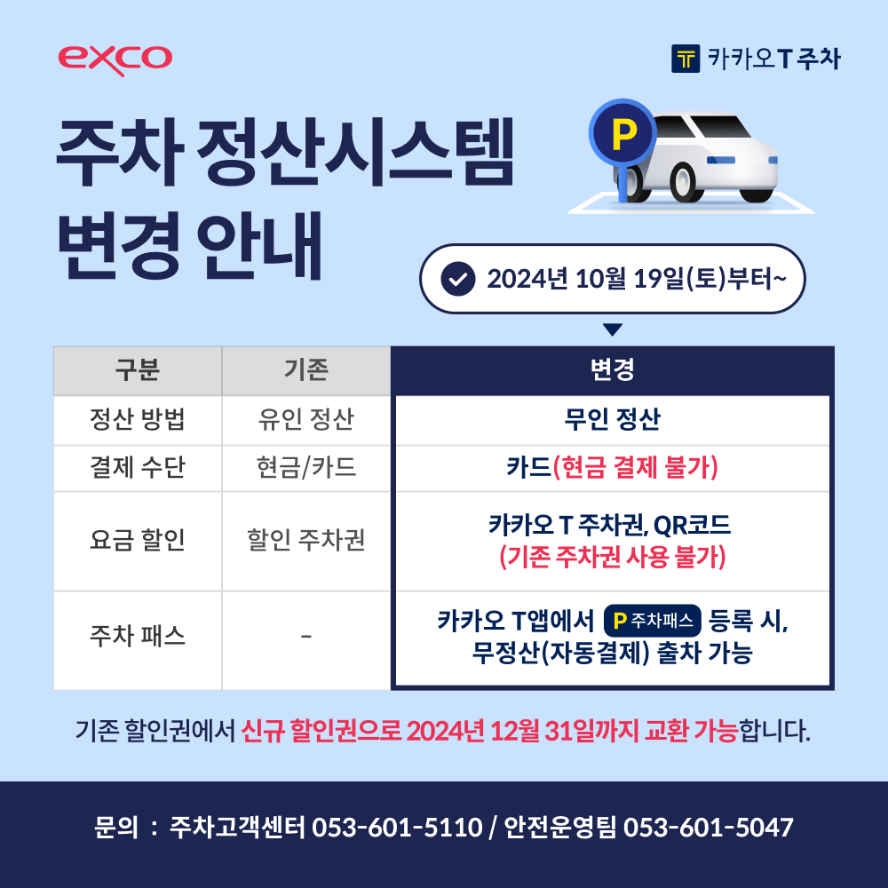 엑스코 주차정산시스템 안내
